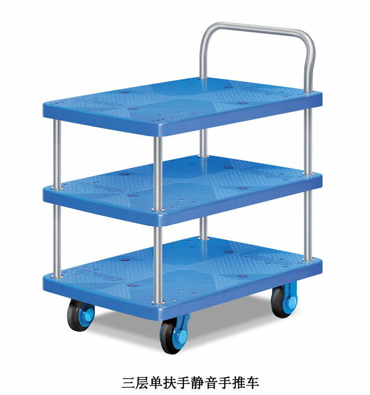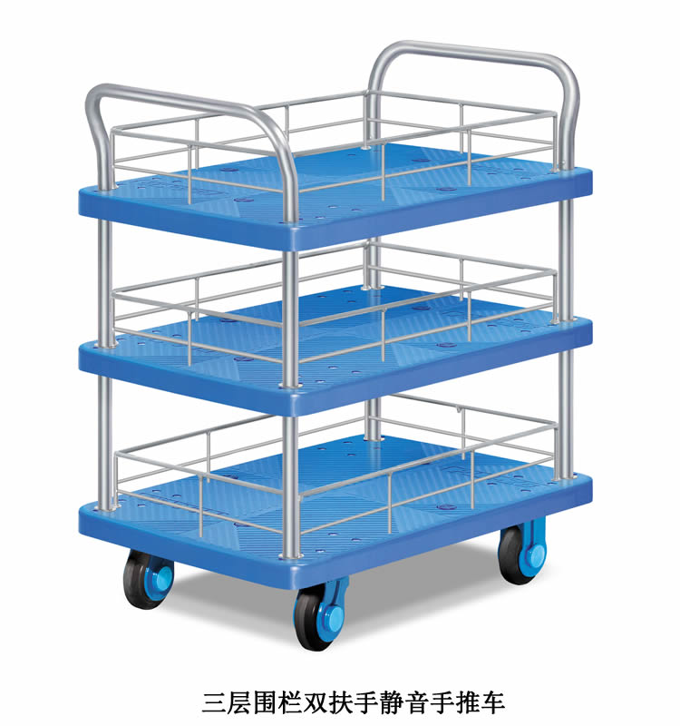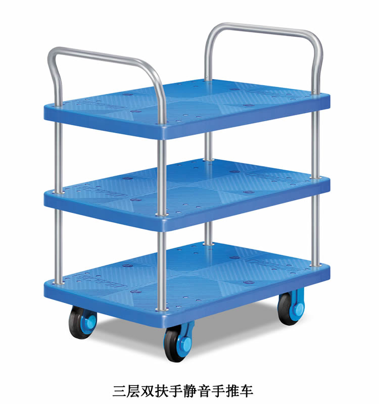 靜音手推車新穎、美觀,合成塑料的車體、腳輪運用,減輕了整車自重。靜音、傳動設計使手推車走行聲音小。適用于廠區、辦公樓、圖書館、賓館、餐飲業、物流運輸等物料搬運行業。